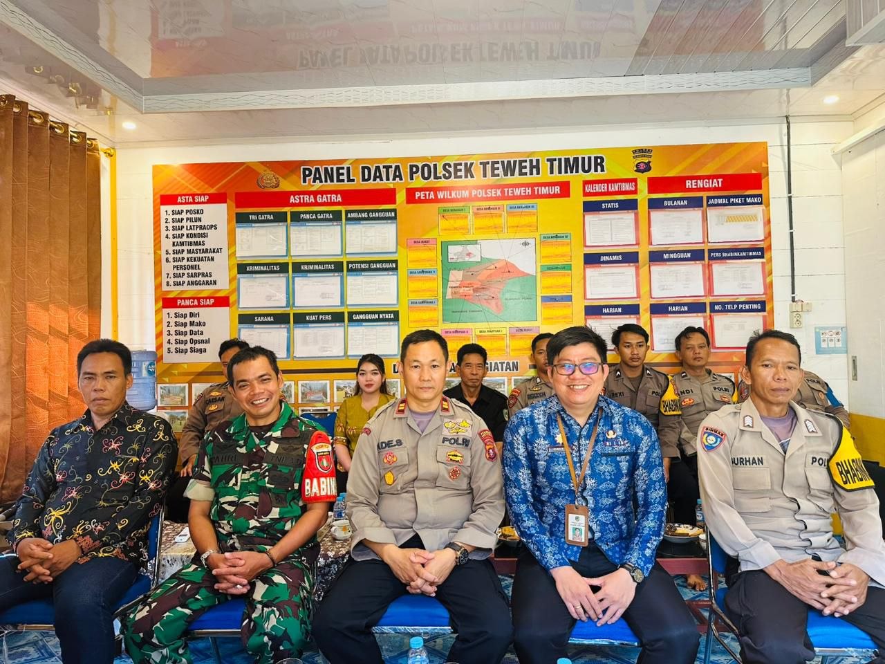 Kegiatan yang berlangsung pada Kamis (30/4/2026) sekitar pukul 13.00 WIB di Aula Polsek Teweh Timur ini dipimpin langsung oleh Kapolsek Teweh Timur IPTU Ade Soemarna, S.Sos., M.A.P, didampingi Bhabinkamtibmas serta dihadiri perwakilan Kecamatan Teweh Timur, unsur Koramil, para kepala desa, dan Masyarakat Peduli Api (MPA).